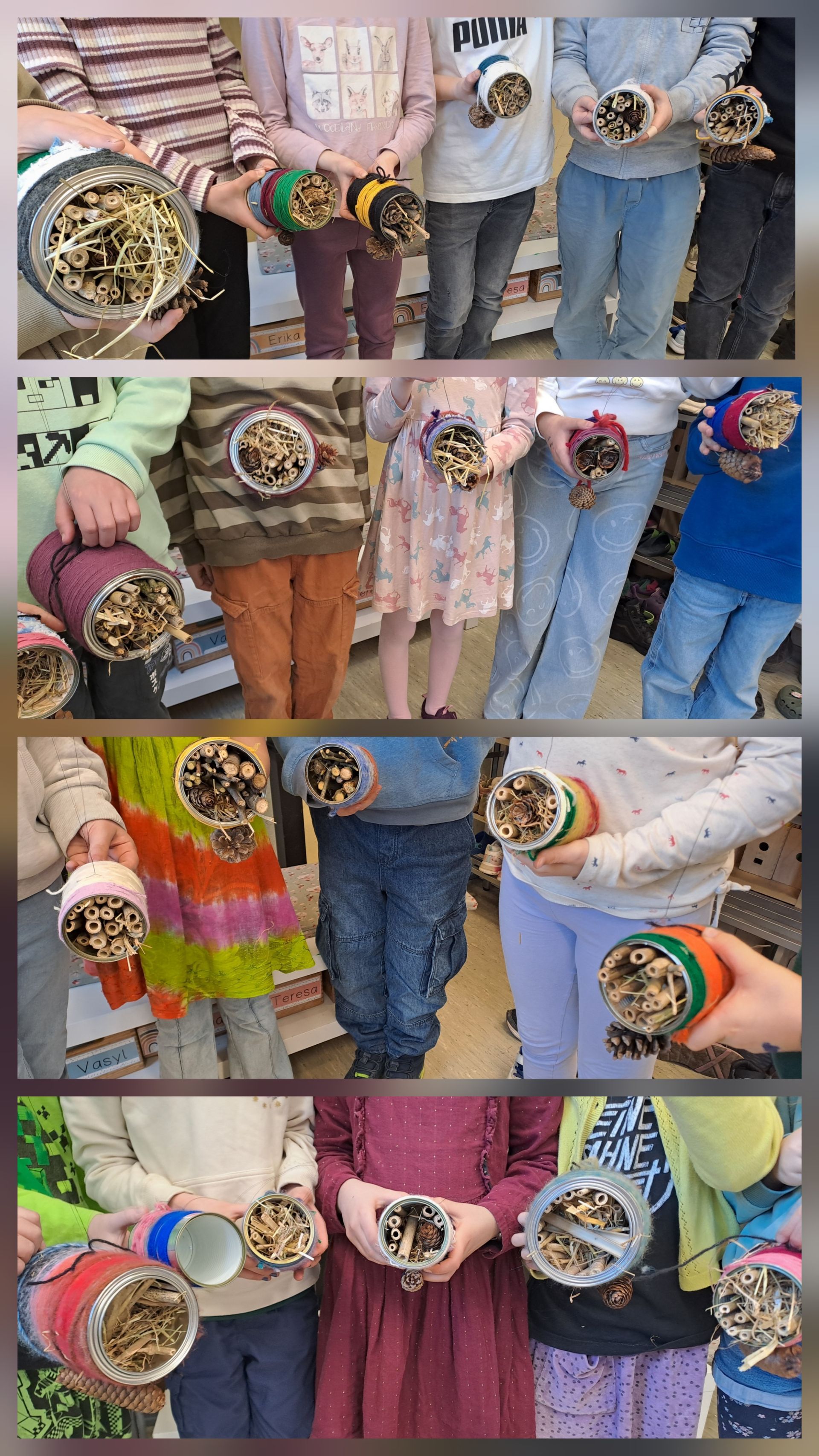 Unsere fertigen Insektenhotels sind richtig toll geworden, und wir sind stolz darauf, einen Beitrag zum Schutz der Insekten zu leisten. Jetzt hoffen wir, dass schon bald viele kleine Gäste bei uns einziehen!