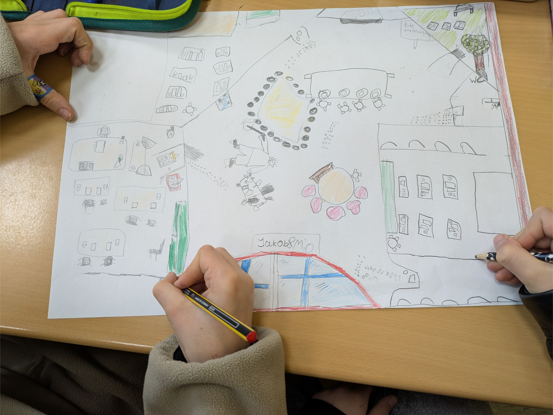 In Kleingruppen skizzierten die Schüler*innen nach ihren Vorstellungen eine inklusive Schule. Hierüber sind die Kinder in einen regen Austausch gekommen, sodass sie zu tollen Ergebnissen und Ideen gekommen sind.